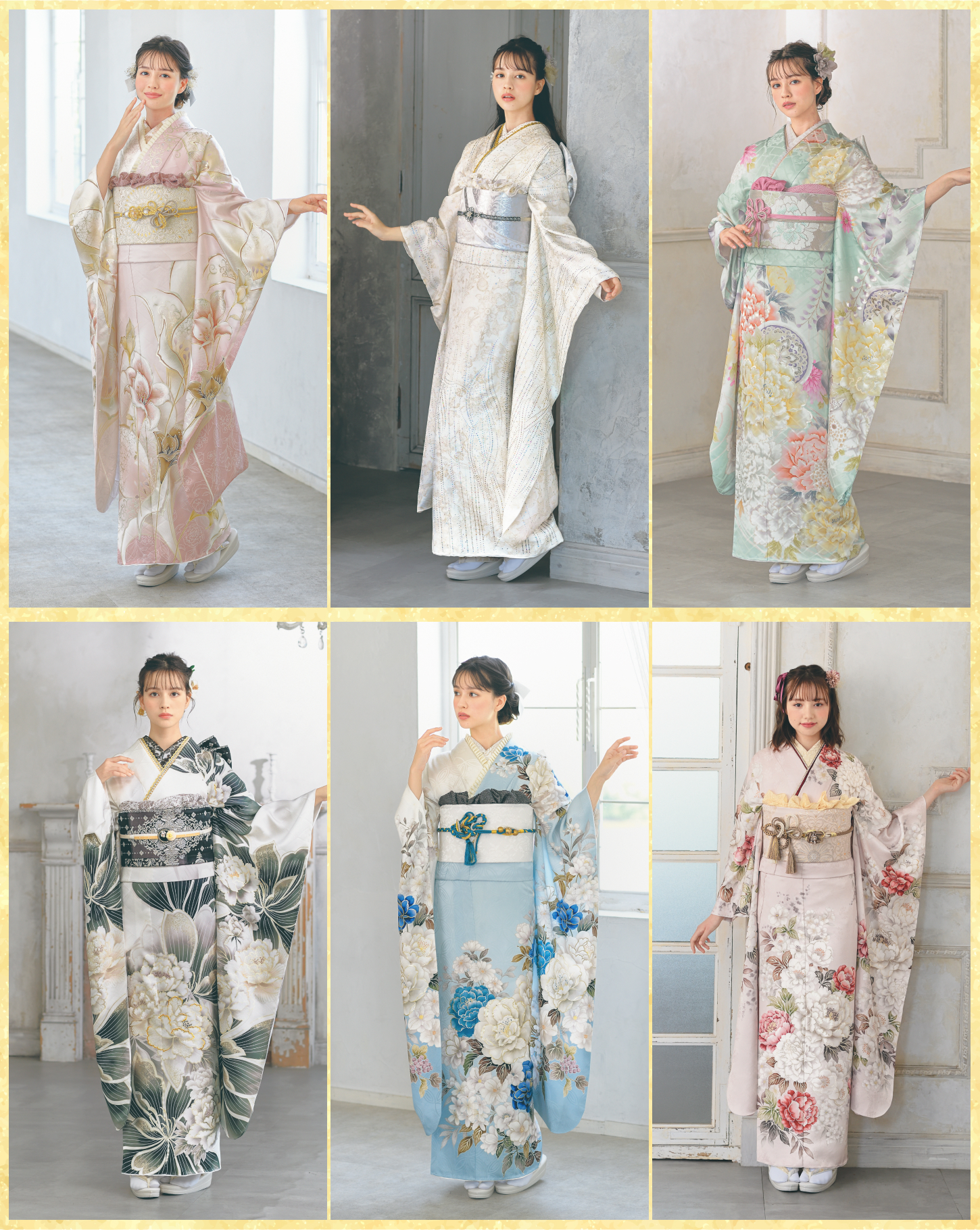 あづま&リアンでは振袖のレンタル、購入、スタジオ撮影、お母様の振袖リメイクの4つのコースをご用意。