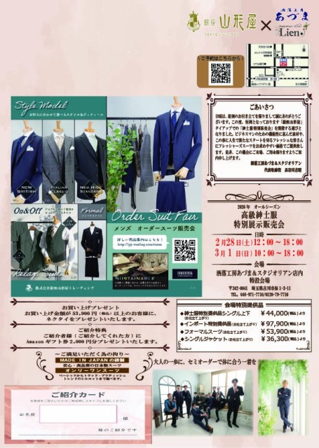 前撮り相談会&銀座山形屋スーツ展示販売会のお知らせ