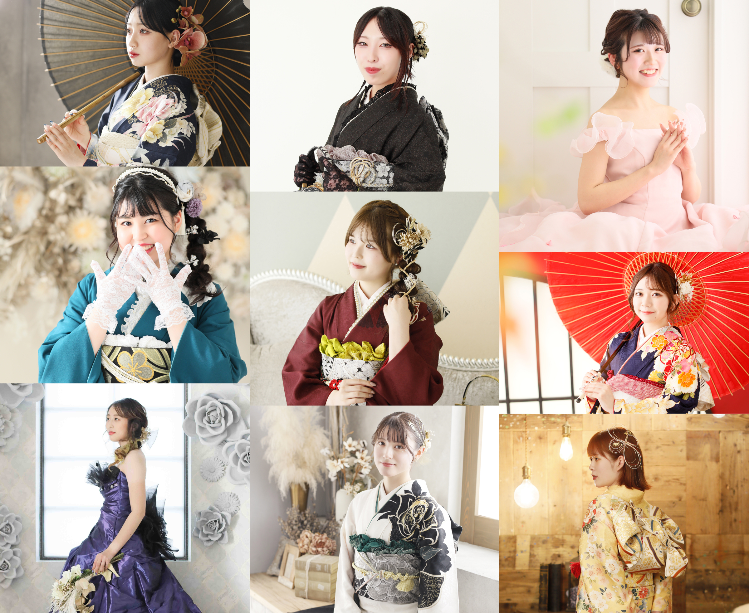 「振袖選び」から「お写真撮りのお支度・撮影」と「成人式当日のお支度」が全て1ヵ所で出来ます。